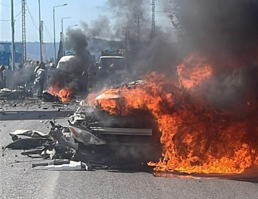 An Israeli drone targeted a civilian car with a missile on Wednesday morning at al-Housh intersection near the entrance of Rashidieh refugee camp, located at the southern entrance of the city of Tyre in southern Lebanon.